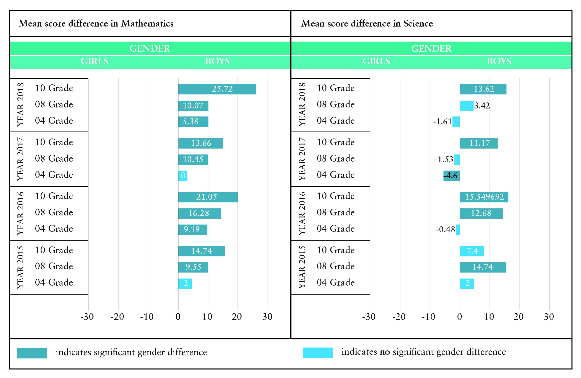The UNESCO report Cracking the Code: Girls and Women’s Education in STEM analysed student learning data from more than 120 countries that participate in large-scale international learning assessments. The report found that on average in middle to high-income countries, gender disparity in terms of science learning achievement reduces as students progress through school, while a significant difference continues to exist in mathematics. However, little is known about the performance of girls in STEM for countries or regions that do not regularly participate in international large-scale assessments.